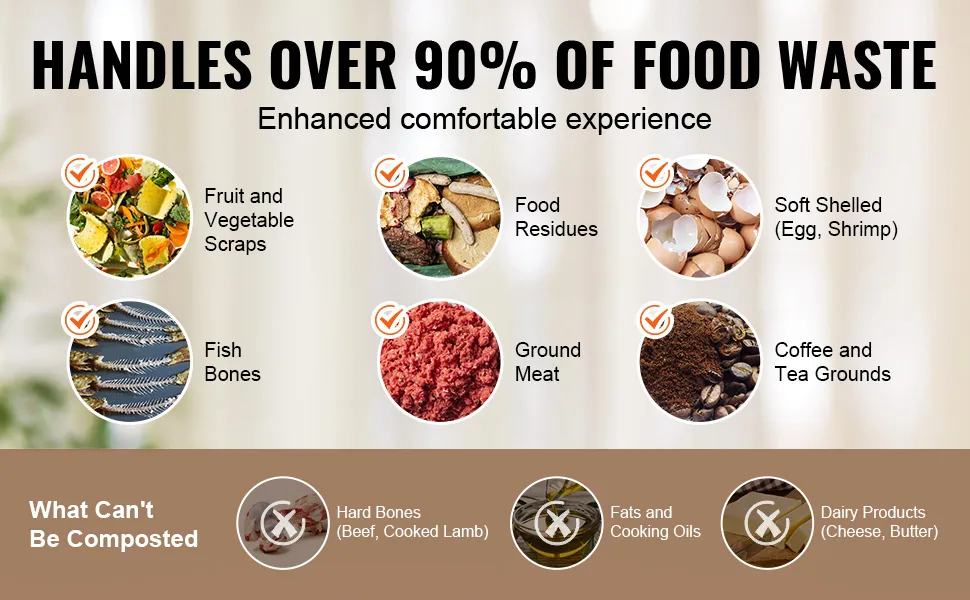 Este compostador de residuos de alimentos ajusta automáticamente el par motor en función de la dureza de los residuos, lo que acelera el proceso y ahorra energía. Las cuchillas afiladas garantizan una trituración rápida, mientras que el ventilador turbo reduce el ruido y disipa el calor de manera eficiente.