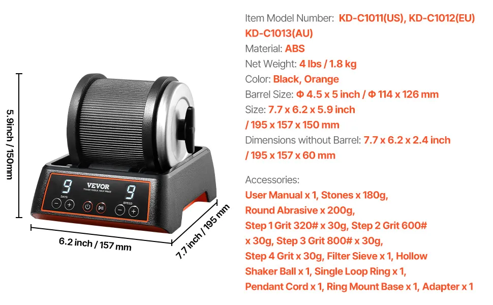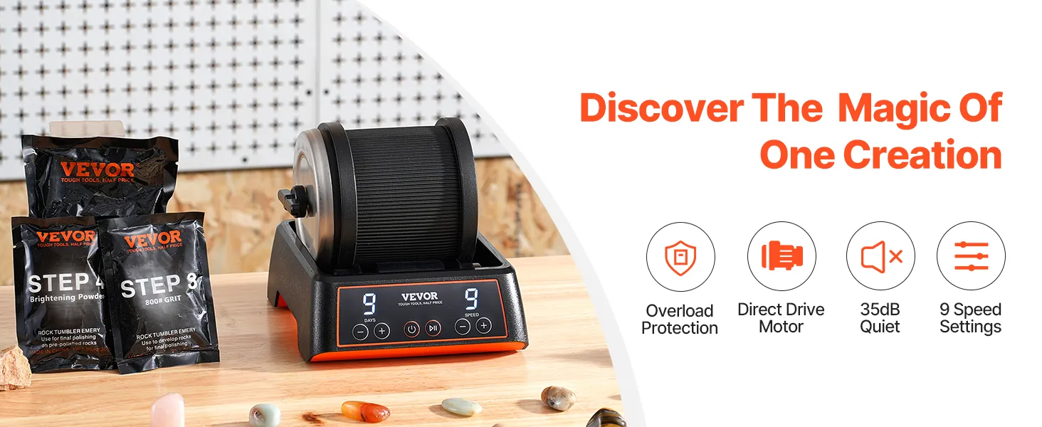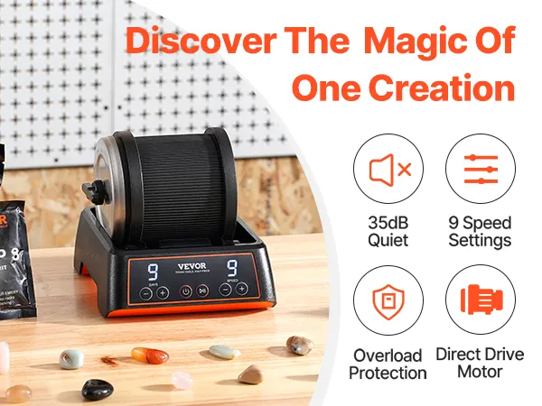 Control mejorado de 9 velocidades: Este kit para pulir piedras cuenta con un panel de control fácil de usar que te permite elegir entre 1 y 9 velocidades y un temporizador de 1 a 9 días. Tanto si eres un principiante de 8 años como un coleccionista de piedras, disfrutarás puliendo piedras preciosas sin esfuerzo para crear artesanías comparables a las de un maestro.