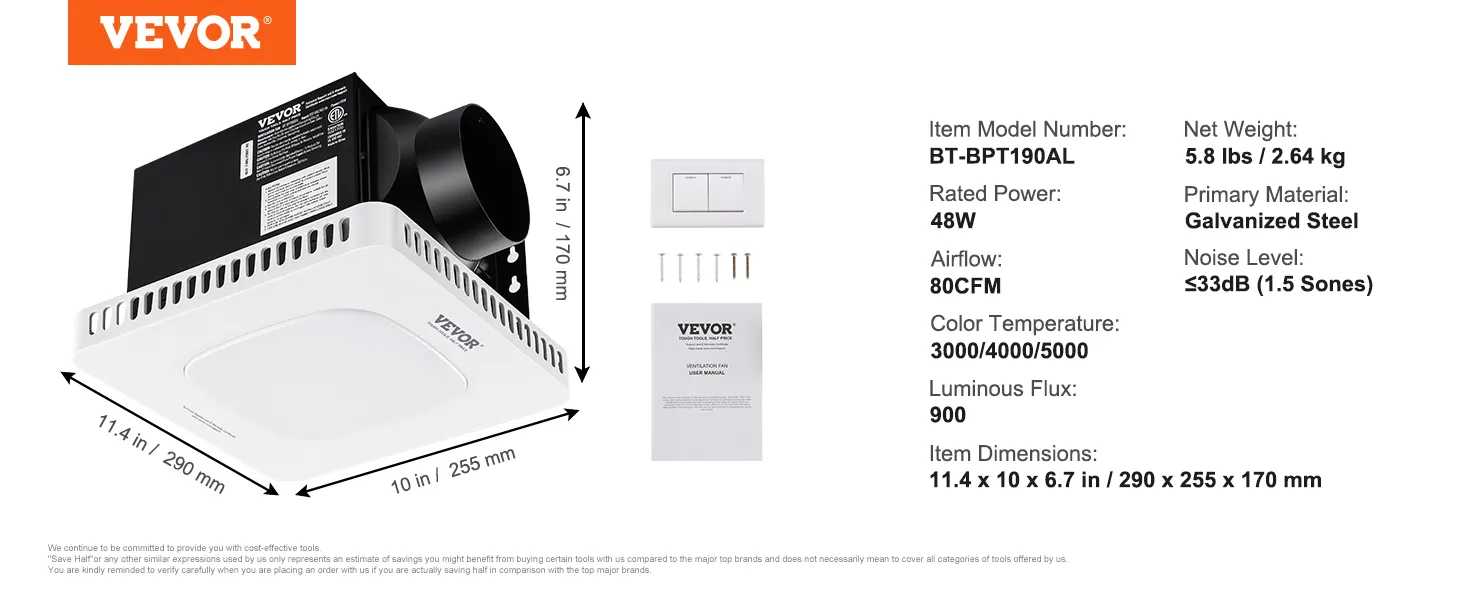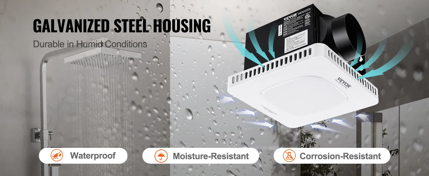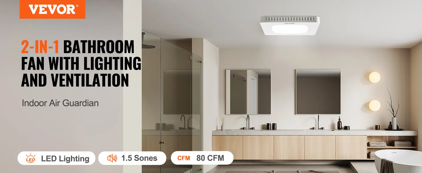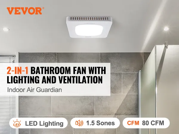 Alto flujo de aire de 80 CFM: impulsado por un motor de alta calidad, este extractor de aire ofrece un impresionante flujo de aire de 80 CFM. Es ideal para baños de hasta 85 pies cuadrados, ya que ventila eficazmente, elimina olores, controla la humedad y evita el empañamiento para un hogar más saludable.