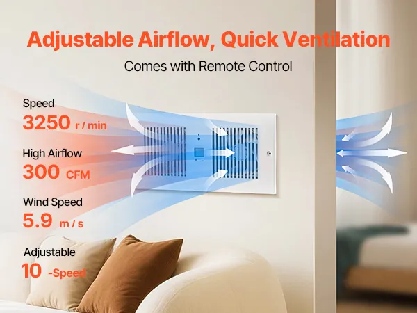Rapid Ventilation: With a high speed of 3250 r/min and powerful performance, this wall vent fan delivers a maximum airflow of up to 300 CFM, meeting the ventilation needs of spaces like the living room, bedroom, and laundry room