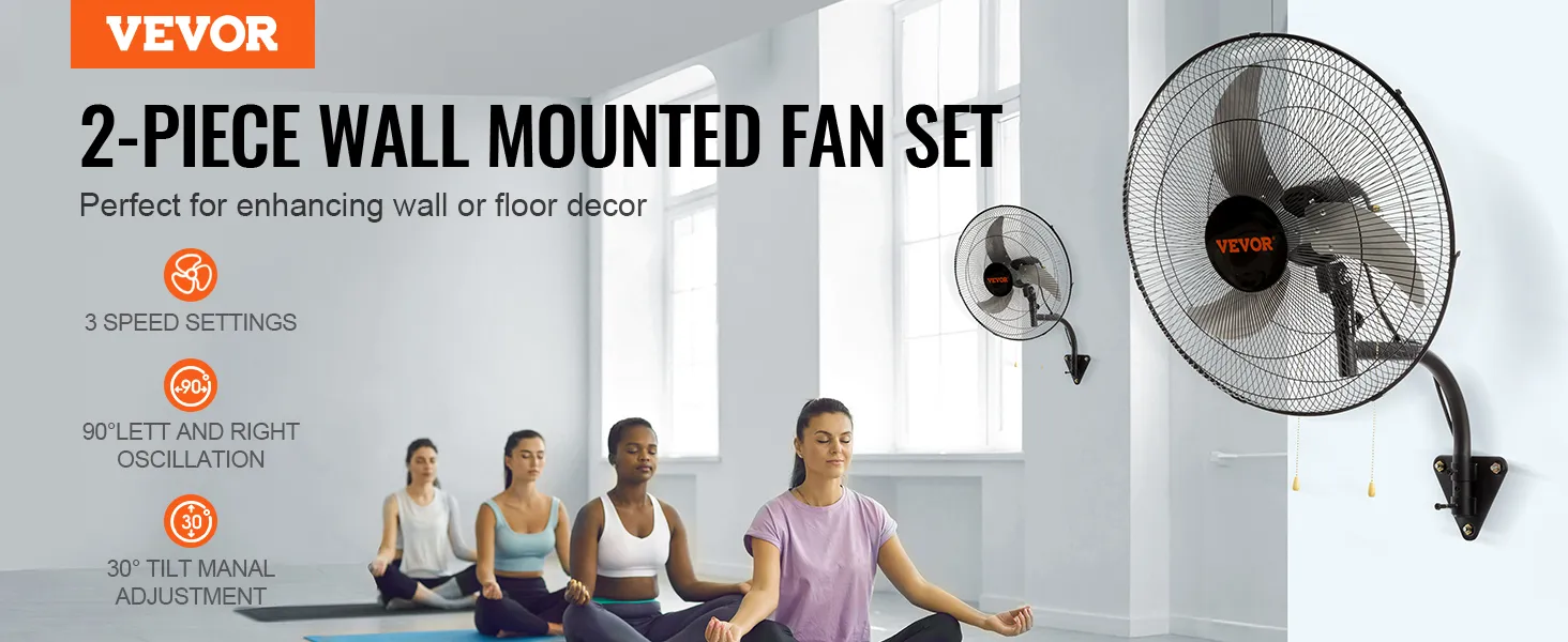 Nuestro juego de 2 ventiladores de pared garantiza un potente flujo de aire de refrigeración incluso en las áreas más amplias. Con 3 configuraciones de velocidad ajustables y un rango de suministro de aire de 30 pies, la comodidad fresca llega a todos los rincones sin esfuerzo.