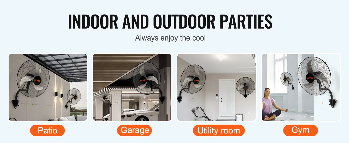 Wall Mount Fan: Rugged metal construction and aluminum blades for easy disassembly and cleaning. As they mount on any solid wall, you can save a lot of space and distribute better the air by mounting them as height as you need.