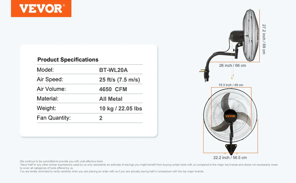 Ventilador de montaje en pared: Construcción de metal resistente y aspas de aluminio para un fácil desmontaje y limpieza. Como se montan en cualquier pared sólida, podrás ahorrar mucho espacio y distribuir mejor el aire montándolos a la altura que necesites.