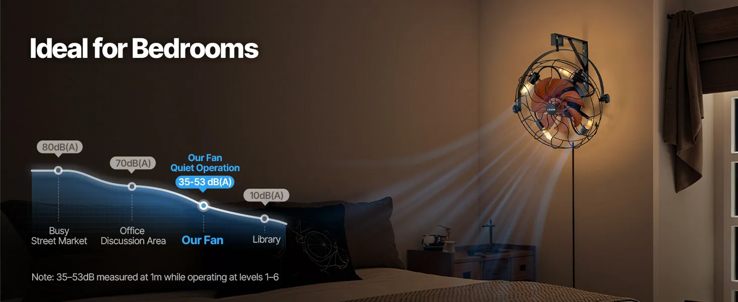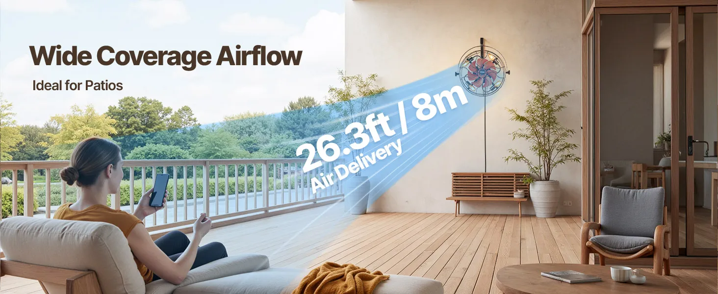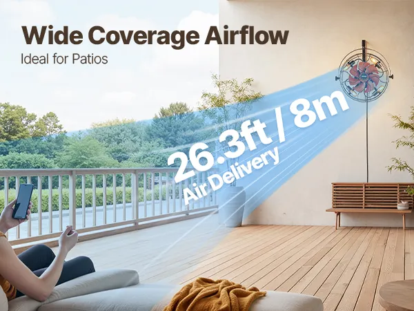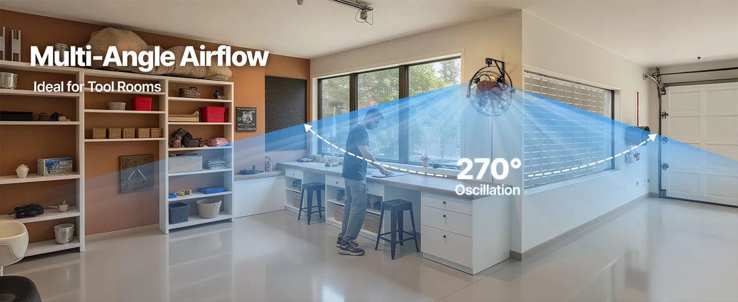 Dirección de flujo de aire ajustable de 360°: este ventilador de pared admite un ajuste horizontal y vertical completo de 360°, lo que le permite dirigir el flujo de aire exactamente donde se necesita en espacios grandes.