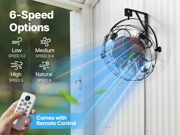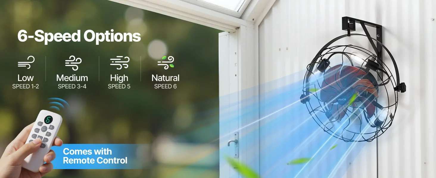Control de 6 velocidades: ofrece 6 configuraciones de velocidad precisas más un modo de viento natural para adaptarse a diferentes necesidades de enfriamiento y proporcionar una brisa más cómoda.