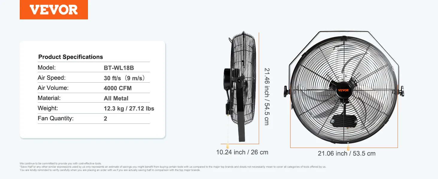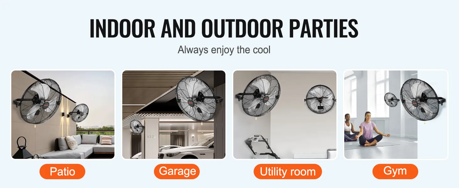 Adjustable Wall Mounted Fan: Get ready to reach every corner of the room! The 18'' weatherproof wall fan can be tilted vertically for optimum airflow. Get ready for a complete heavy-duty metal construction with aluminum blades for easy disassembly and cleaning.
