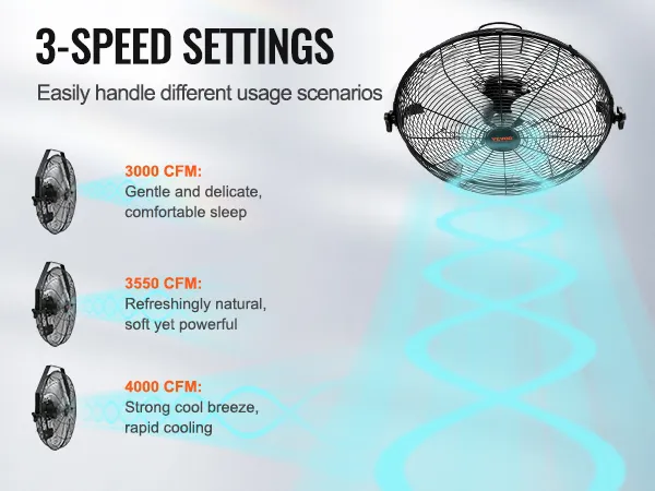 Move Lots of Air: The metal pull-string is convenient for you to control 3 speeds. Performance is rated at a maximum of 4150 CFM with a reach of around 30 ft. Escape your air-conditioned cave and enjoy the outdoors, even in peak heat.