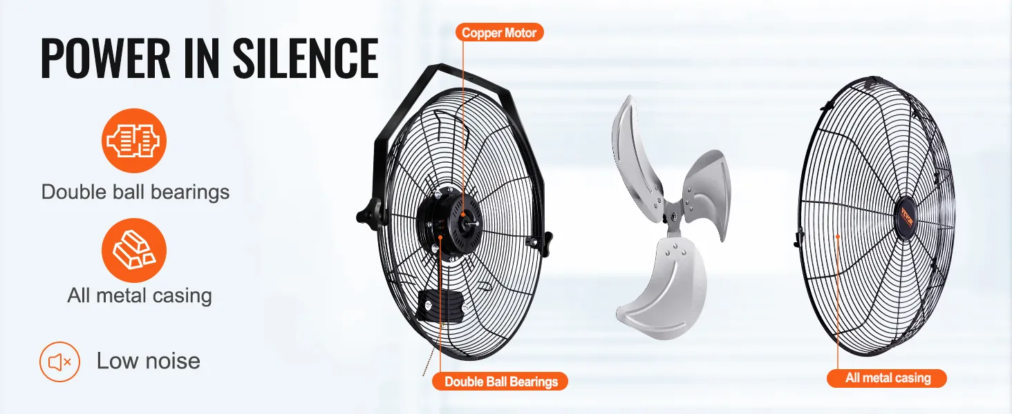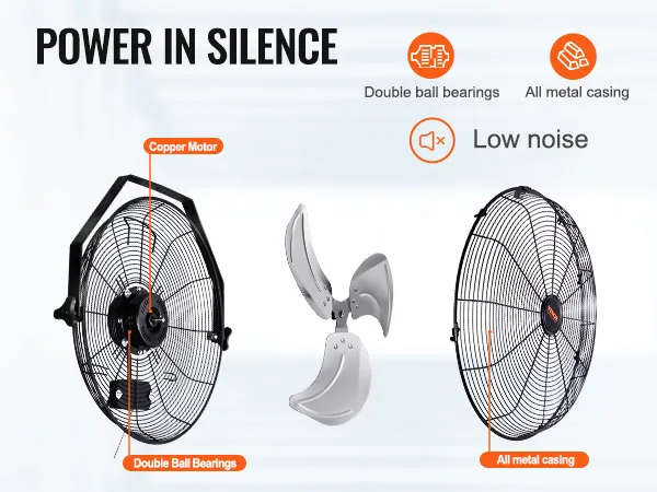 Equipped with double ball bearings and a full metal casing, this wall-mounted fan ensures efficient operation while maintaining low noise levels. Not only does it ensure strong airflow output, but it also provides a comfortable fan experience in a quiet condition.