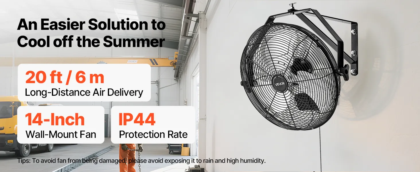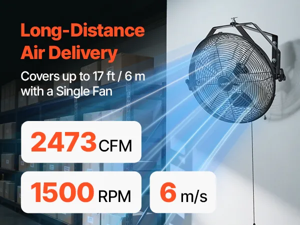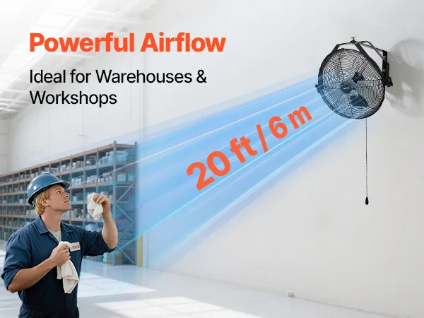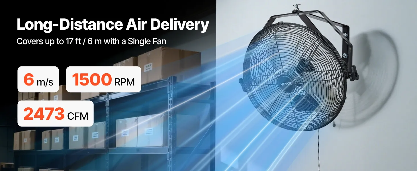 Strong Airflow, Rapid Cooling: This industrial wall mount fan delivers high airflow to quickly lower temperatures, blowing up to 26.3 ft (8 m) Ideal for workshops, warehouses, hot kitchens, and other demanding conditions