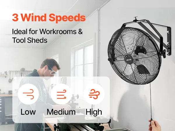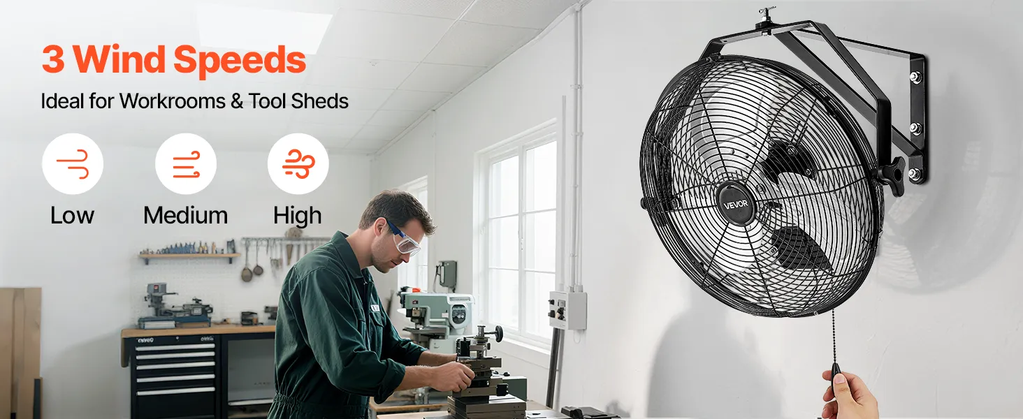 3-Speed Fan for Versatile Cooling: This wall-mounted fan offers 3 speed settings with a maximum airflow of 2473 CFM to meet different cooling needs across seasons and conditions