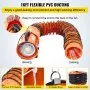 La manguera para conductos aplica poliéster tejido de vinilo de 0,012 pulgadas/0,3 mm de espesor para resistencia al calor y retardo de llama. Los anillos en forma de D están diseñados para colgar el conducto flexible de PVC sin problemas. Las cuerdas gruesas se pueden ajustar para adaptarse al tamaño de la boca del conducto y garantizar un buen ambiente de sellado.