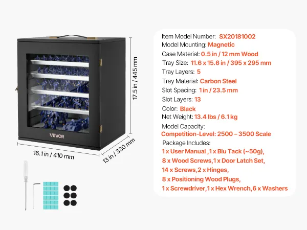 Estuche de almacenamiento para miniaturas VEVOR, apto para modelos a escala 1:2500-1:3500, expositor de miniaturas de madera con 5 bandejas y 13 ranuras, estuche transparente para transportar miniaturas coleccionables (miniaturas no incluidas).