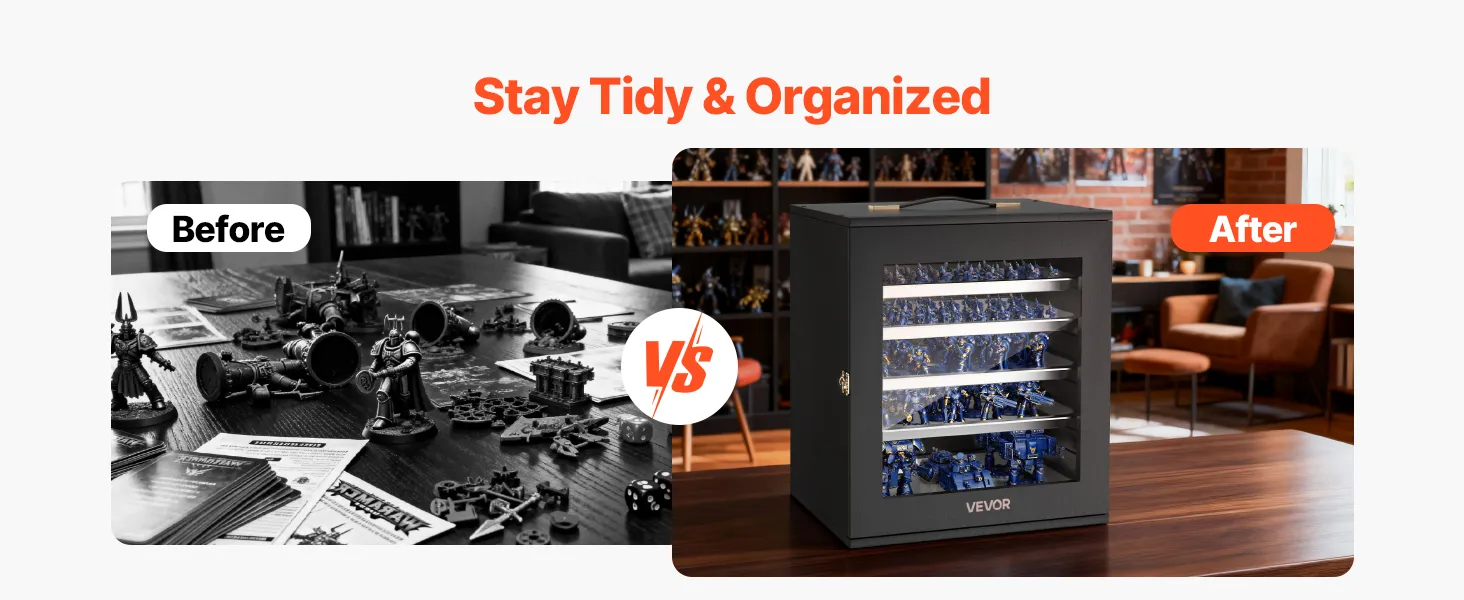 Gran capacidad: Este estuche de almacenamiento en miniatura mide 41 x 33 x 44 cm y es ideal para colecciones a escala 1:2500-1:3500. Podrás guardar más miniaturas en un solo lugar y mantener una exhibición ordenada, lista para viajar o para tus noches de juegos.