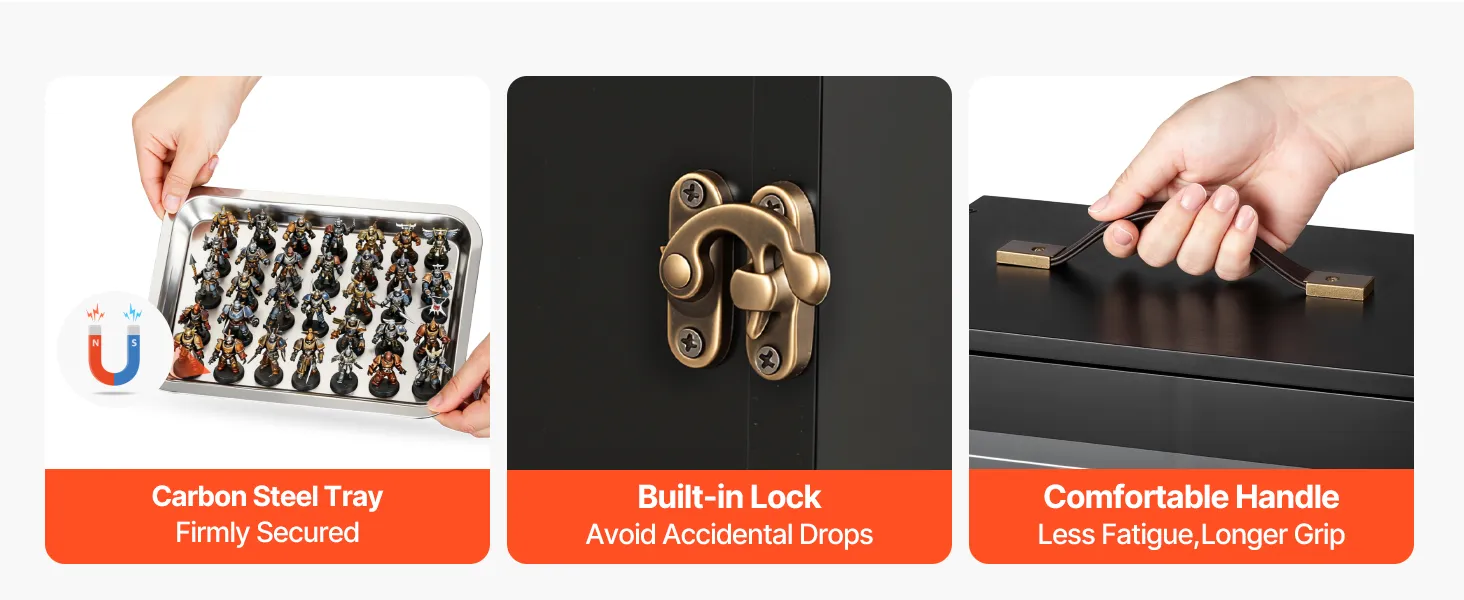 Diseñado para proteger: Este estuche magnético para miniaturas incluye 5 bandejas de acero anticorrosión y una carcasa de madera de 12 mm (0,5 pulgadas). Ofrece una gran resistencia a los impactos y a los arañazos, lo que ayuda a proteger las miniaturas durante los desplazamientos y las reuniones.