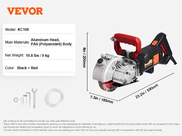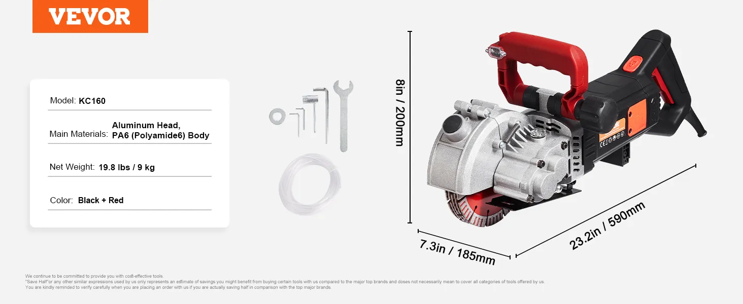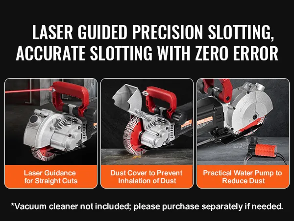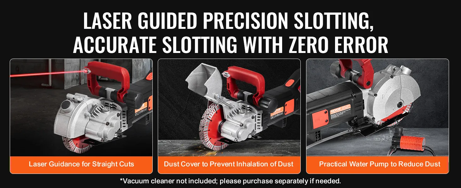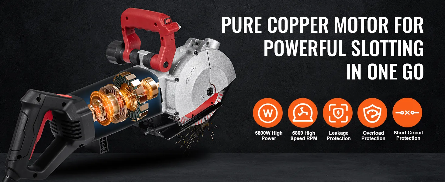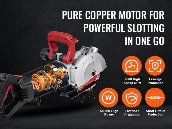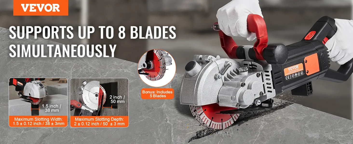 Corte de ranuras potente y eficiente: con una carga de hasta 4800 vatios de potencia, la ranuradora de pared puede entregar hasta 6800 rpm, lo que le permite cortar mármol, concreto, madera y ladrillos, proporcionando un ancho de corte máximo de 1,5 pulgadas y una profundidad de corte de 2 pulgadas.